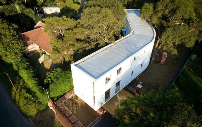Situada en un lote esquina, frente a un histórico colegio y con mucha exposición, se busco proteger la vivienda del exterior y abrirla completamente al interior.